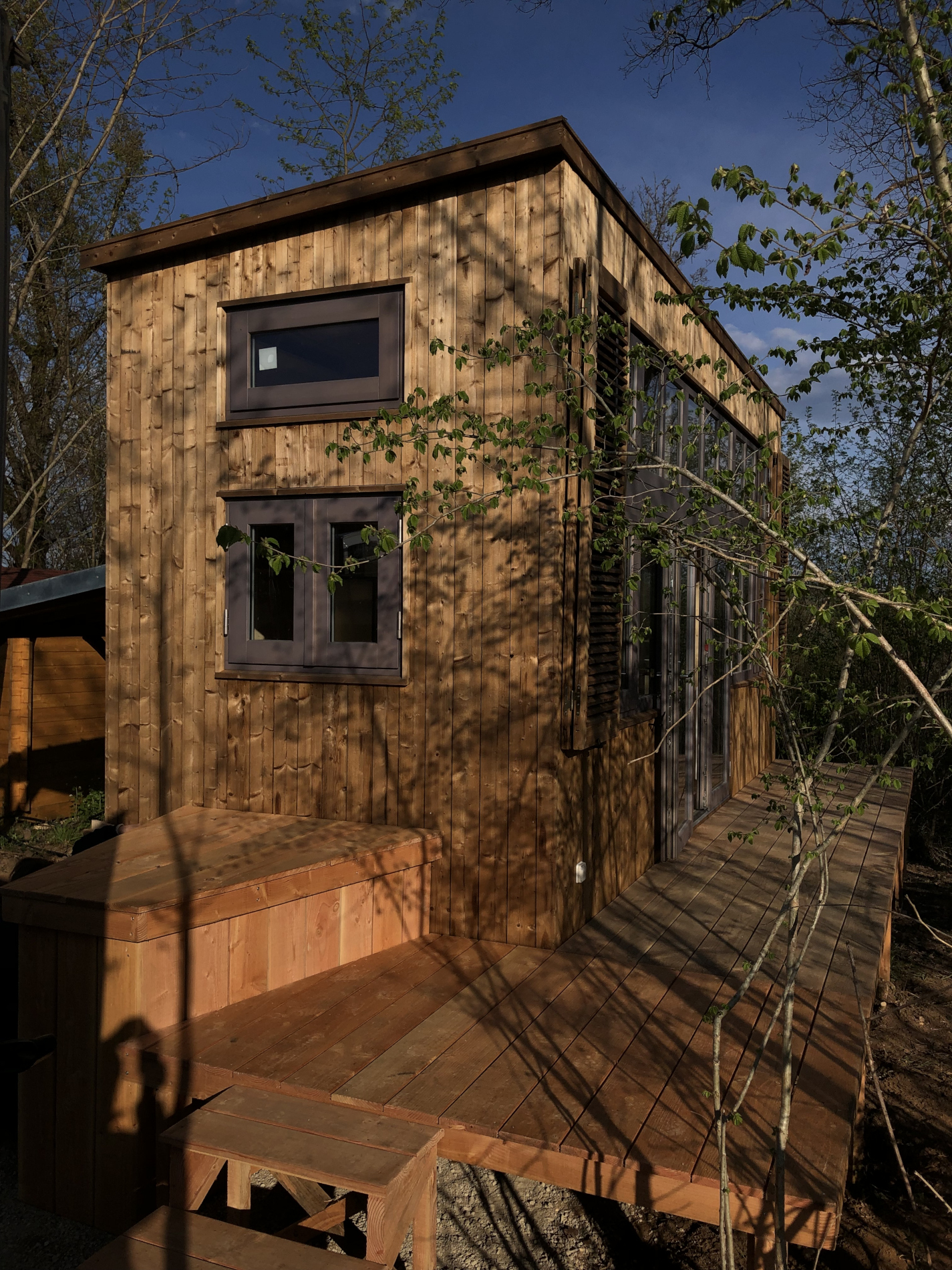 | Terrasse | En douglas, 2 auvents en zinc à l'arrière de la Tiny |